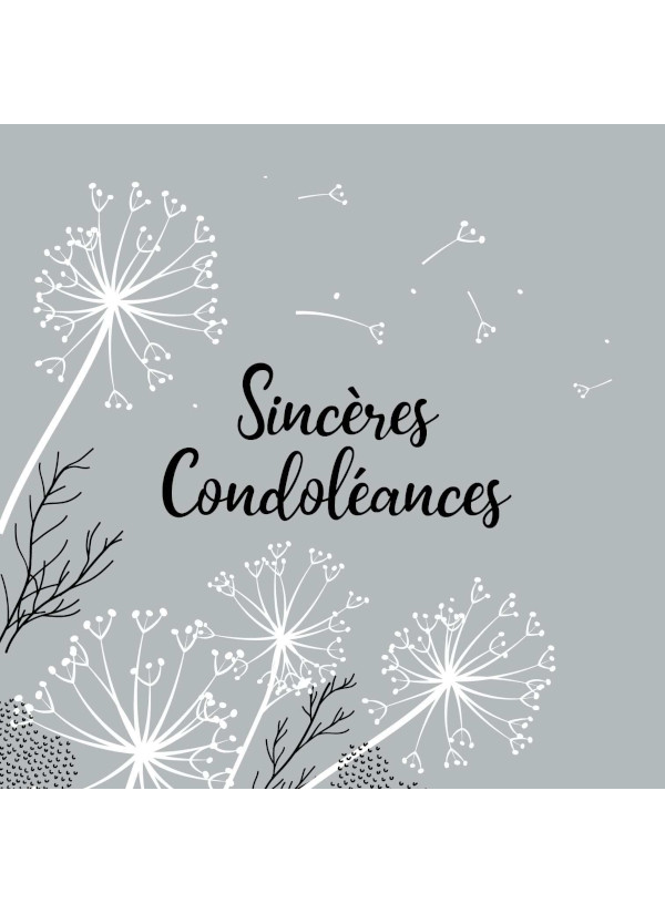 Carton Sincères Condoléances, fourni avec enveloppe blanche.